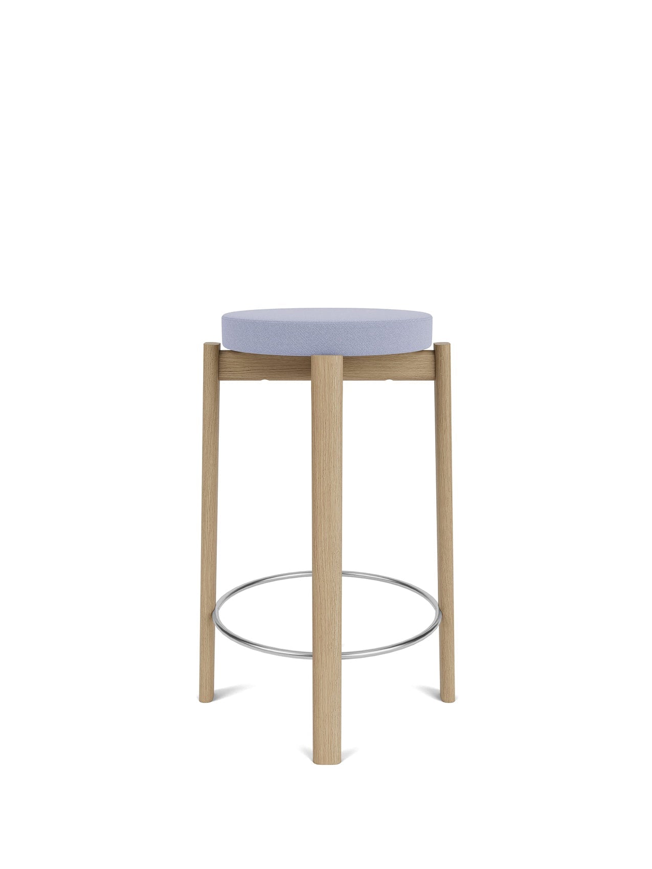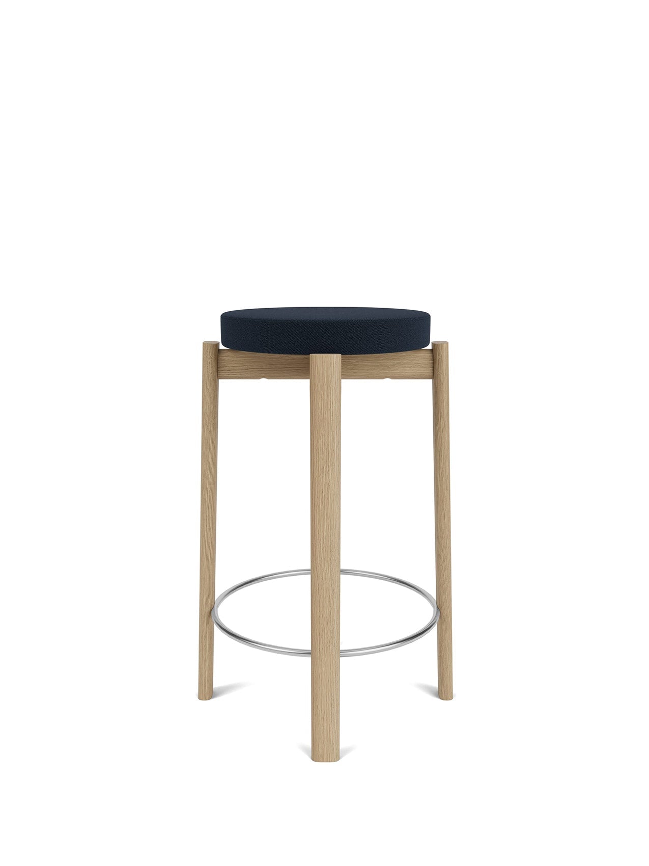 The upholstered Passage Counter Stool represents an elevated iteration of the original design and a heightened level of comfort. With its upholstered seat, providing a plush and inviting sitting experience, the versatile design is anchored by a solid wood base, in lacquered walnut or FSC™-certified natural oak, not only adding a touch of natural warmth to the design but also ensuring stability and durability for long-lasting use. Customisable fabric upholstery options provide a personal touch while a brushed steel or brushed brass foot ring enhances the comfort level. The Passage Collection demonstrates meticulous attention to detail, highlighting a commitment to both comfort and aesthetics rooted in traditional woodworking techniques.