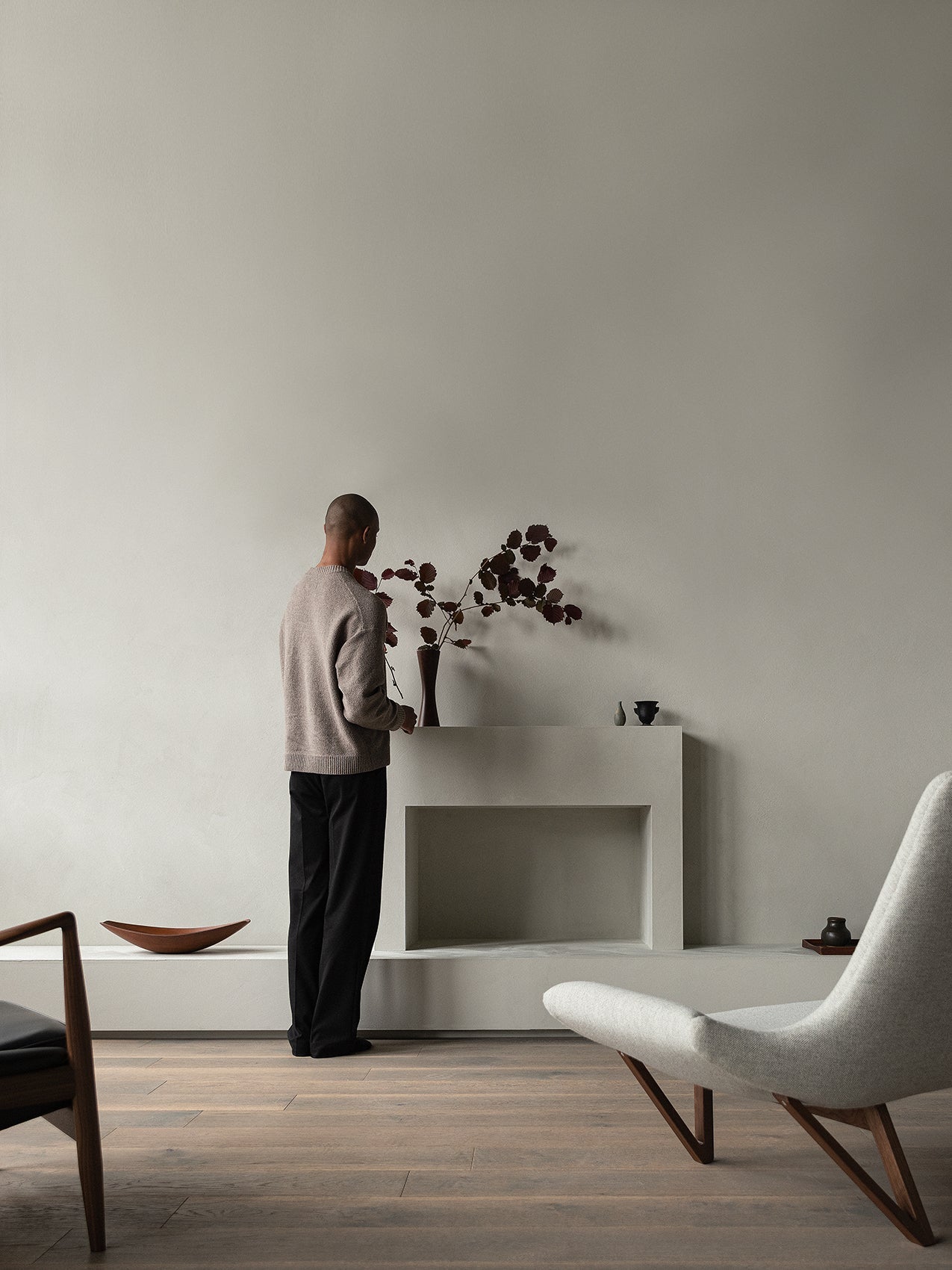 Front figures in the development of Danish furniture design between 1930 and 1960, Tove and Edvard Kindt-Larsen (1906-1994 & 1901-1982) were visionary designers – and husband and wife. Creating furniture, silverware, jewellery, textiles and more, the prolific couple were the harbingers of a new era in Danish furniture design, eschewing the traditional furniture set in favour of individual and adaptable design pieces that could be curated according to style, use and mood. It was a breakthrough in the Danes' way of interior decorating, as well as the general regard for furniture furniture. Edvard Kindt-Larsen cut his teeth as an architect under Kaare Klint at the Department of Furniture Design at the Royal Danish Academy of Fine Arts. He achieved great recognition for a large-scale hotel project by the lakes in Copenhagen and was later honoured with the Eckersberg medal for his work with Snedkerlauget's Exhibitions, which he organised in the years 1943-1966. Tove Kindt-Larsen – one of Denmark’s first notable female designers – studied at the Academy of Fine Arts but never graduated. She did, however, receive widespread recognition for her work as both an architect and a designer, in particular her textile designs and pioneering rattan furniture. When she married Edvard in 1937, she had already won first prize in the Carpenter's Guild competition. She was lauded for her work, "bravely setting out to solve a task in a new way." Her furniture is characterised by a fine sense of quality and a style that adapted to the changing tastes of the times.